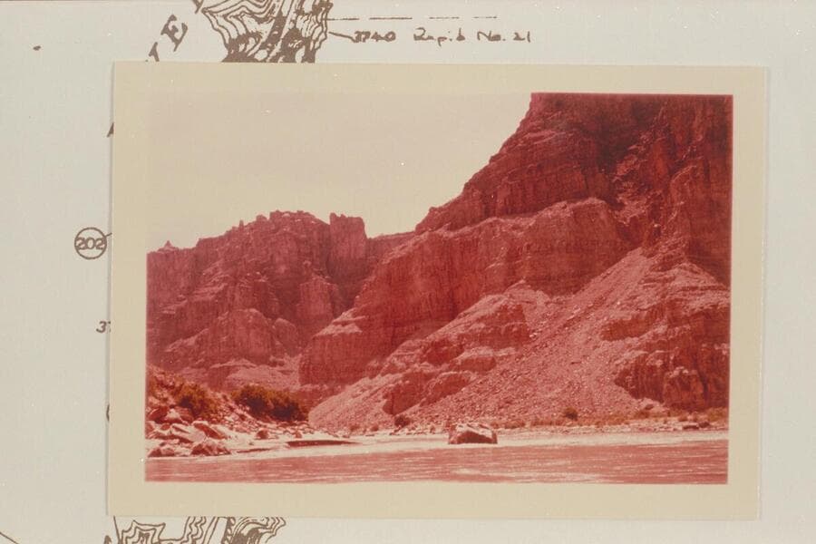 Down River from Mile 207.35. The gyp intrusion at mouth of side canyon appears at left center of print