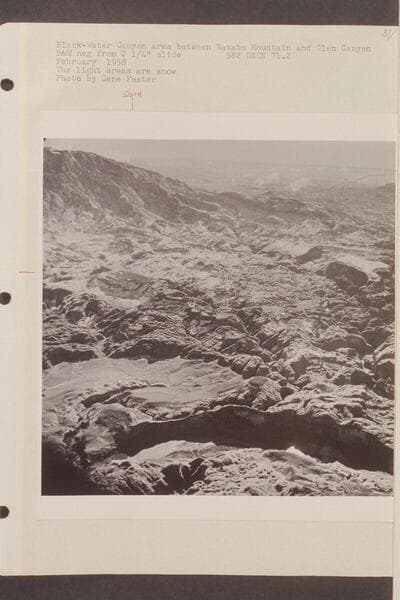 Black-Water Canyon area between Navajo Mountain and Glen Canyon. The light areas are snow