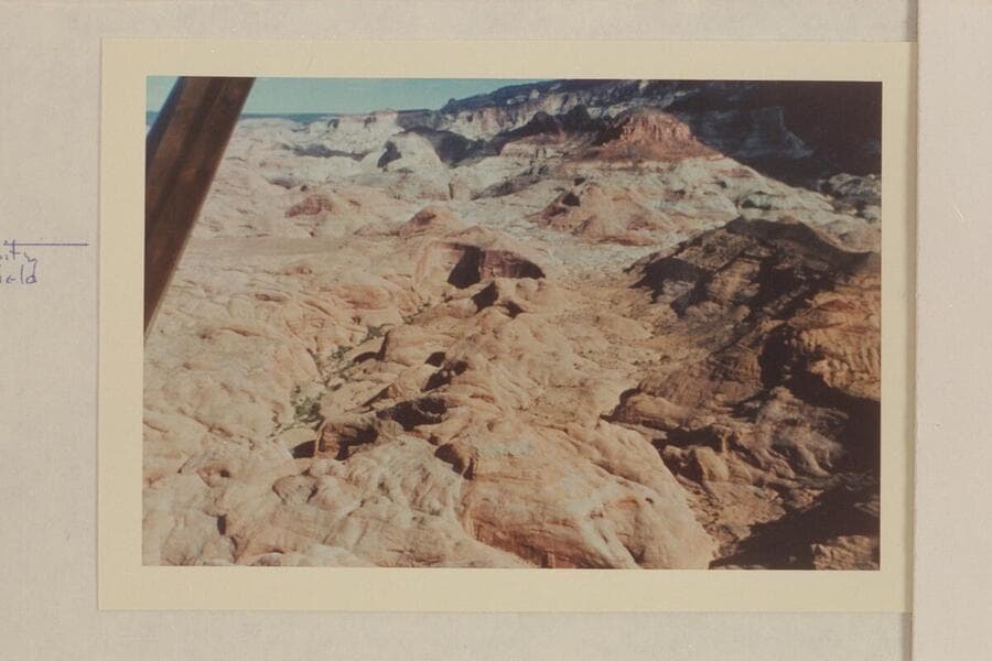 Small drainage heading in caves north of Butte 5014. Butte 6069 is upper right