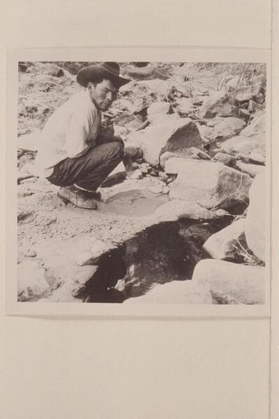 Bahe examines the clear and the black water in Black Water Creek just below Black Water Cave. North side of Navajo Mountain