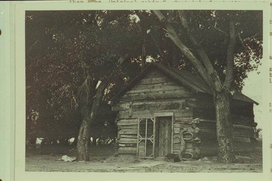 Robert Burns Hildrebrand and Charles Kelly at the original Lee cabin, Lees Ferry