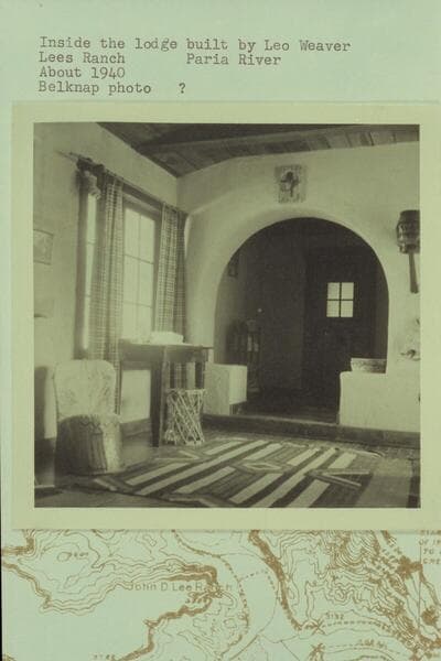 Inside the lodge built by Leo Weaver; Lees Ranch, Paria River