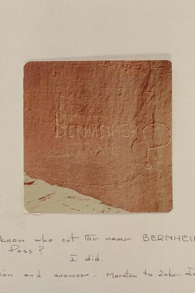 Bernheimer's name cut at Redbud Pass between Cliff Canyon and Bridge Canyon