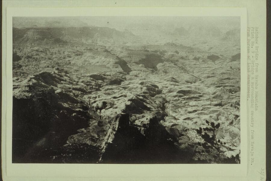 Up Bridge Canyon with Navajo Mountain in distance from top of Rainbow Bridge