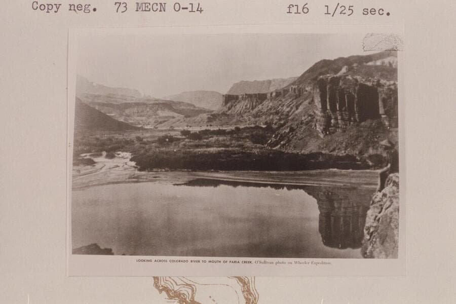Up Paria Valley from left bank of the Colorado showing the early outlet of Paria Creek