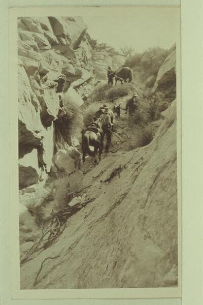 Roosevelt-Wetherill party in the bald-heads on the trail to Rainbow Bridge. Roosevelt is second from left