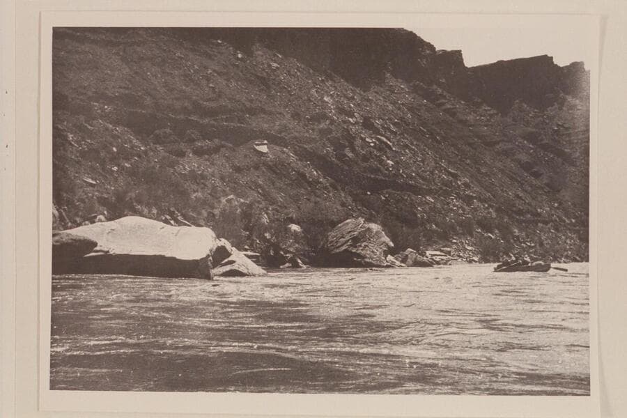 One of the Nevills boats dropping into Paria Riffle. Old Mormon Dugway on left bank