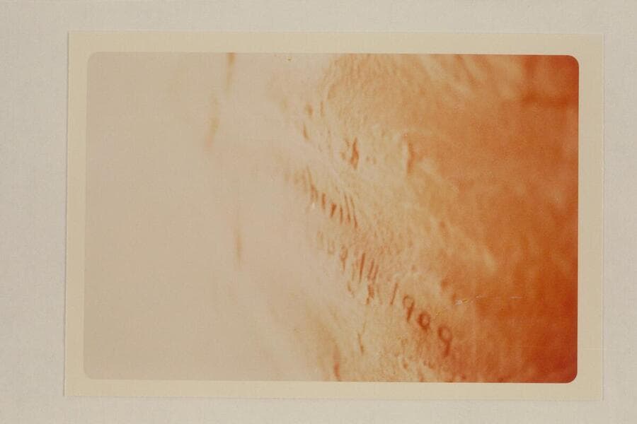 Inscription in crack of boulder under leg of Rainbow Bridge reading: "Zane Grey 1913"