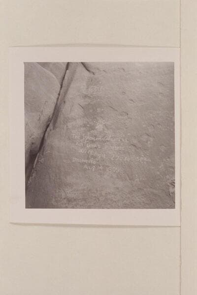 Inscription in crack of boulder under leg of Rainbow Bridge reading: "Zane Grey 1913"