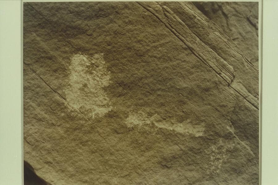 Cutting away of a date on the boulder at the foot of Rainbow Bridge