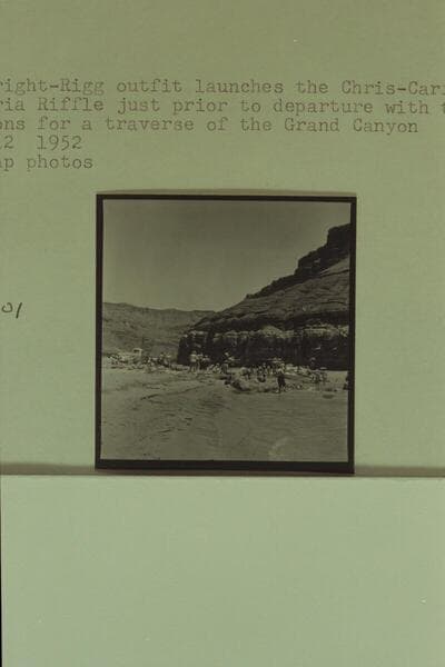 The Wright-Rigg outfit launches the Chris-Craft kit cruiser at Paria Riffle just prior to departure with the fleet of sadirons for a traverse of the Grand Canyon