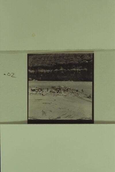 The Wright-Rigg outfit launches the Chris-Craft kit cruiser at Paria Riffle just prior to departure with the fleet of sadirons for a traverse of the Grand Canyon
