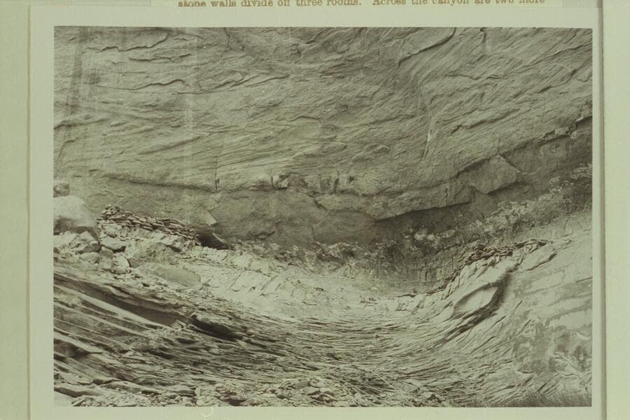 Down into The Narrows at the mouth of Bridge Canyon from near the location of some small ruins