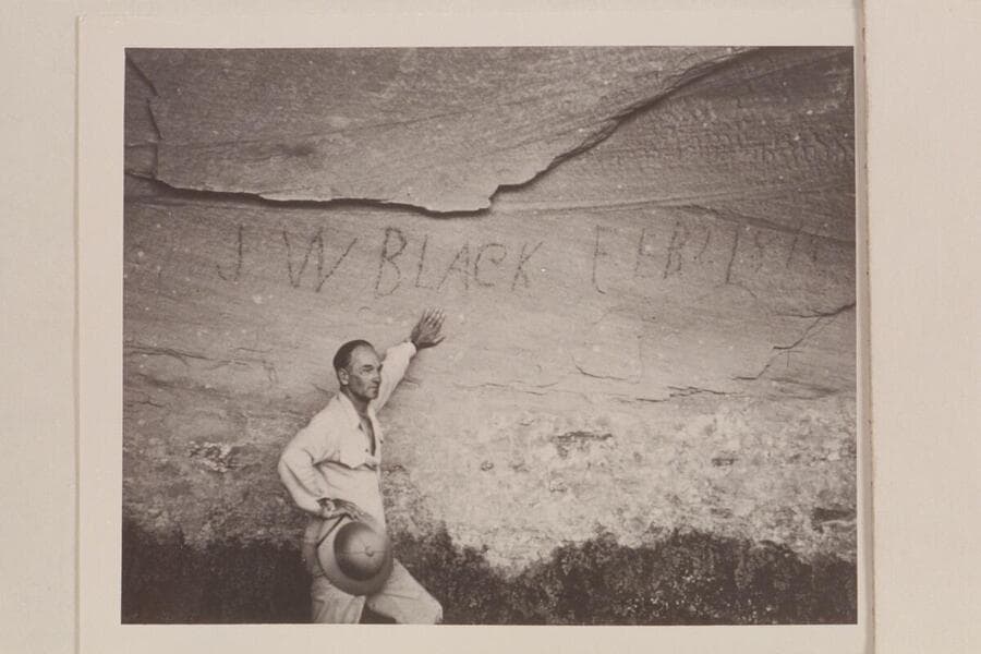 "J W BLACK FEB 2 1894" inscription in cave above Escalante River in Glen Canyon