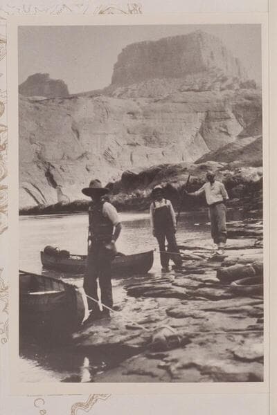 George C. Fraser, Sarah Fraser and Bert Loper at Hole-in-the-Rock camp in Glen Canyon
