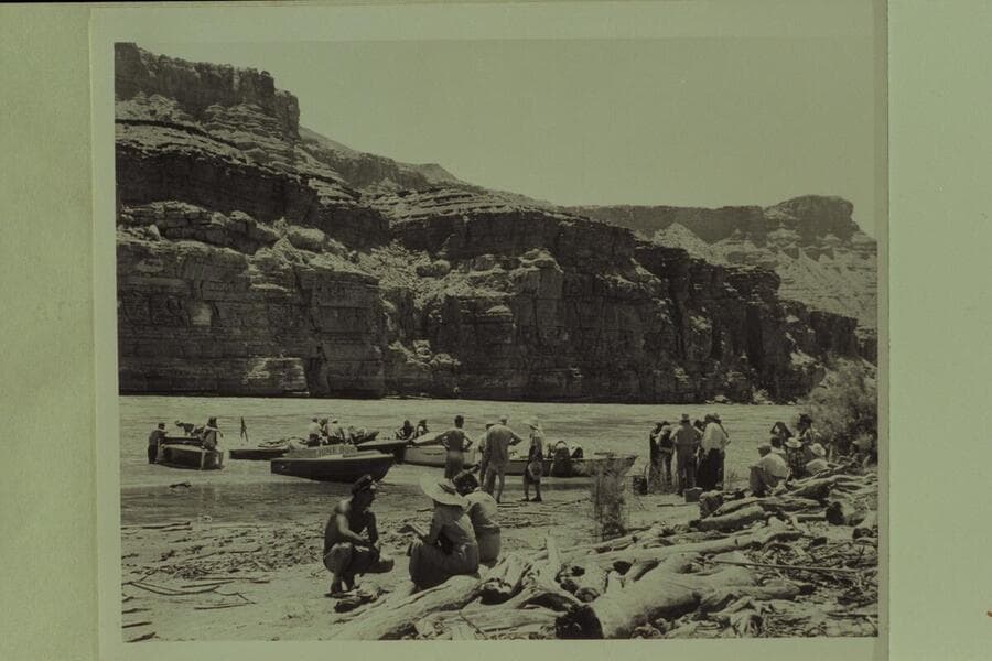Elgin Pierce and Georgie White. Paria Riffle prior to start of Grand Canyon traverse