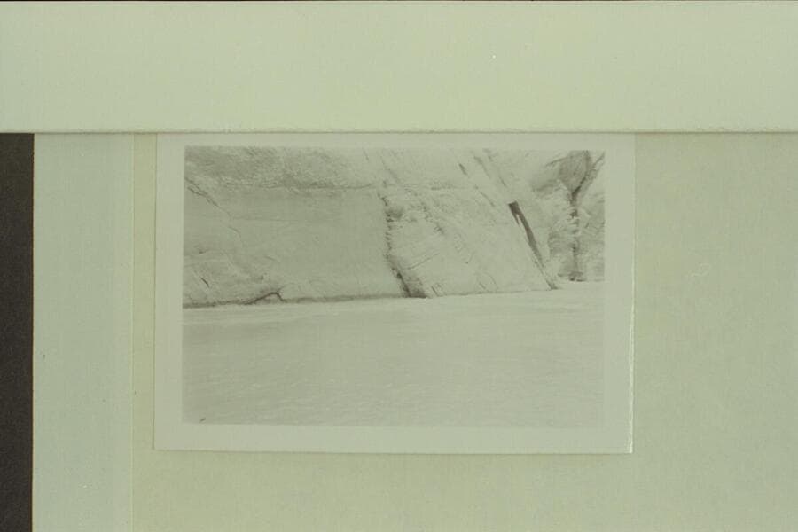 Camp in Forbidding Canyon, 4th and 5th nights. Plaque marking the Crossing of the Fathers about 18 inches above water