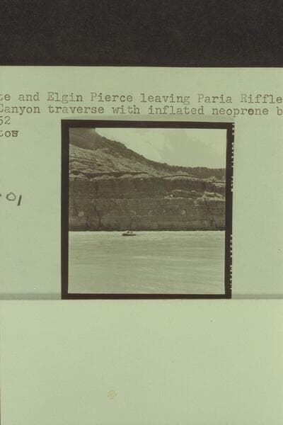 Georgie White and Elgin Pierce leaving Paria Riffle for the Grand Canyon traverse with inflated neoprene boat