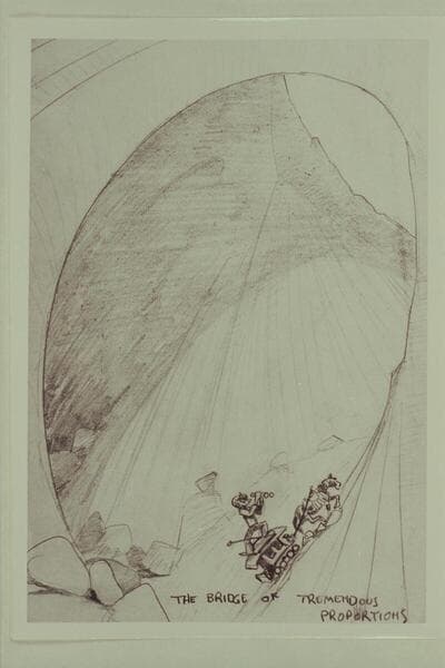 The Arch of Tremendous Proportions. Tom Daly's version of the Marston technic [sic] in seeing the remote bridge-arch country in Navajo Canyon