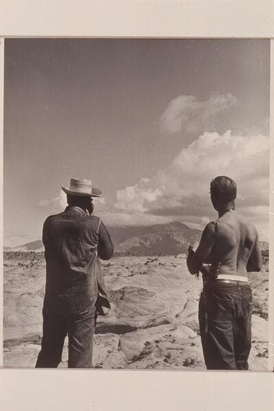 Bill Belknap and Jorgen Visbak photograph Navajo Mountain from the edge of the mesa to the north of Arch in the Sky