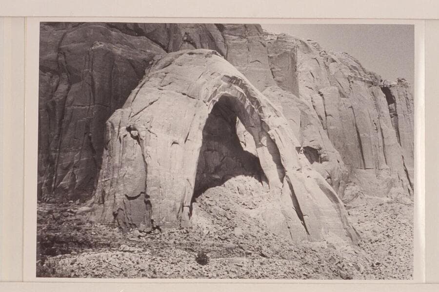 Arch in the Sky; South end of Cummings Mesa. It may have been a discovery on 1954, Sep. 25. It has previously been seen by thousands but only a close approach would reveal the opening back of it