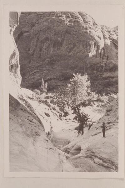 Ba-Sah Bridge, Navajo Canyon. Note the large pot-hole directly below the bridge. There is a deep pool of water with surface about six feet below the rim