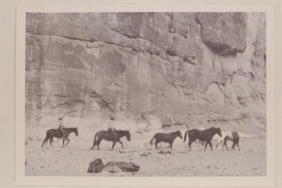 The Navajo wranglers take the stock out to graze from camp near Ba-Sah Bridge, Navajo Canyon