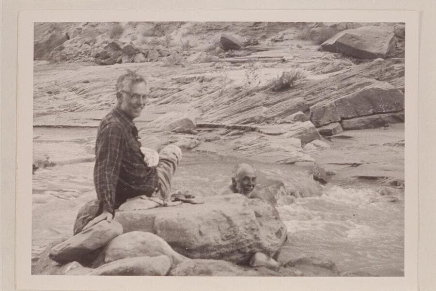 Ballard Atherton at left; Masland in the creek. At camp on Navajo Creek at side canyon where Pothole Bridge is located