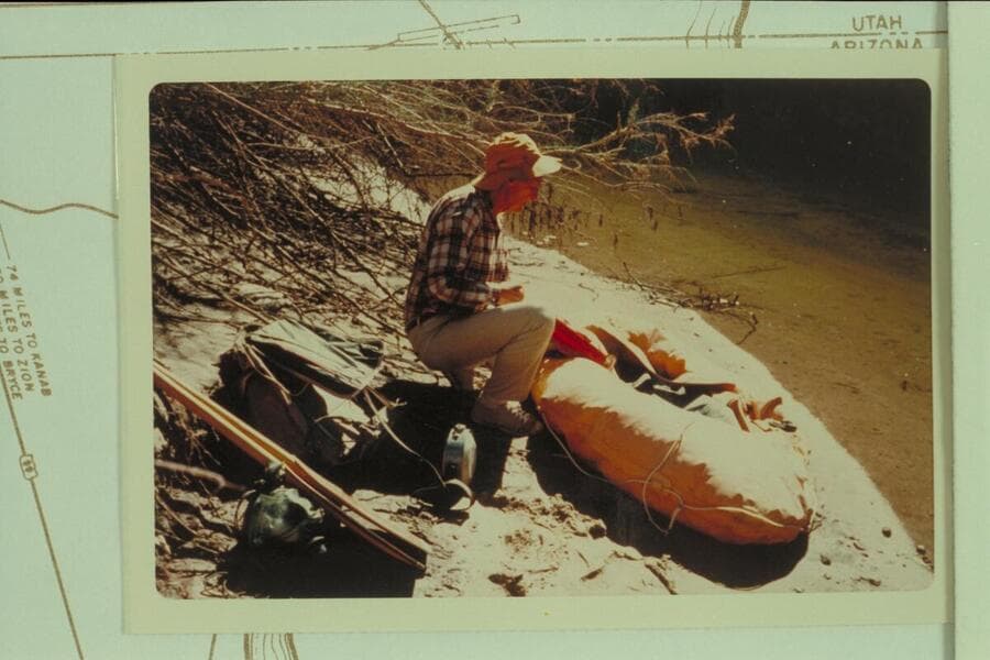 Pat Reilly inflating boat for run from below Glen Canyon Dam to Lees Ferry