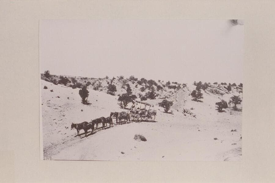 Bull teams bringing lumber to Lees Ferry. Near Cedar Ridge Tanks between Tuba and Ferry