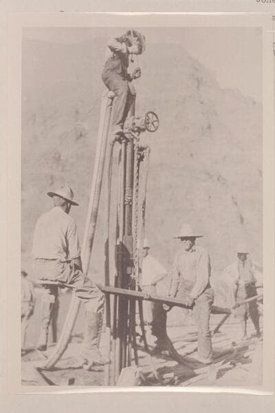 Initial test of the Lovett Pneumatic Pipe Dredge. North side of the Colorado River at Lees Ferry