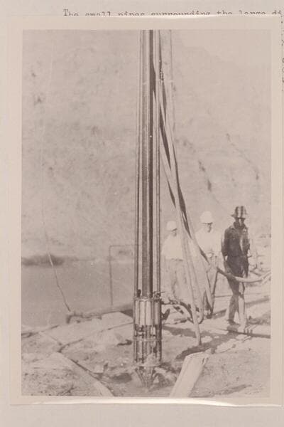 Initial test of the Lovett Pneumatic Pipe Dredge. North side of the Colorado River at Lees Ferry