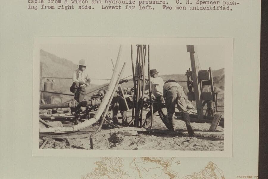 Initial test of the Lovett Pneumatic Pipe Dredge. North side of the Colorado River at Lees Ferry