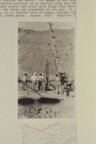 Initial test of the Lovett Pneumatic Pipe Dredge. North side of the Colorado River at Lees Ferry