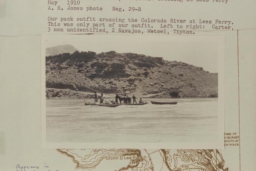 Some of the Spencer party crossing the Colorado River at Lees Ferry
