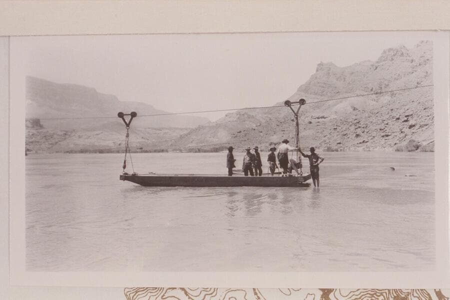 Some of the Spencer party crossing the Colorado River at Lees Ferry