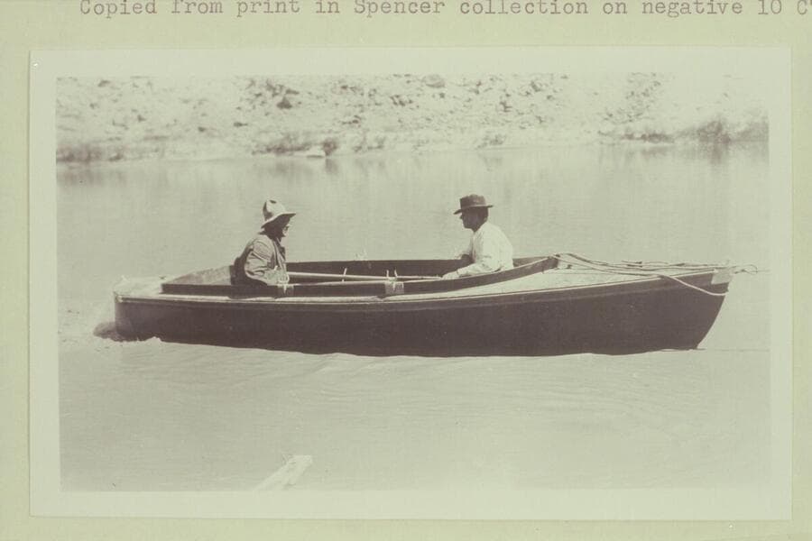 Small launch- Tipton's Mullins boat- up river from the Spencer placer operations at Lees Ferry