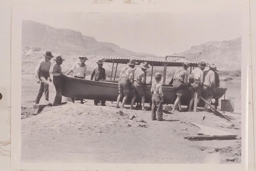 The 18-ft. motorboat "Canopy" and the skiff "W. H. Bradley" near Hole in the Rock