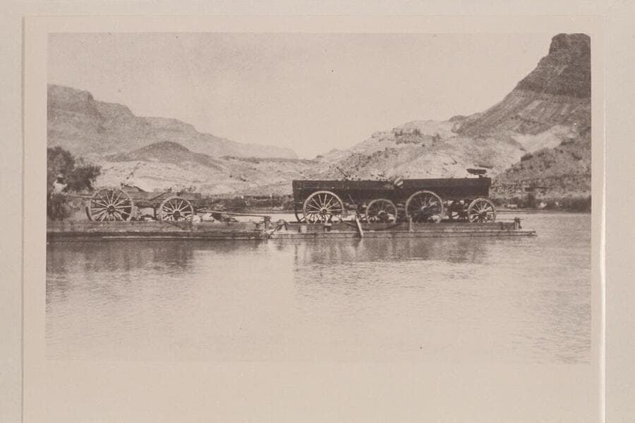 Spencer's camp wagons on Lees Ferry. From Charles Spencer collection, p.86, lower right