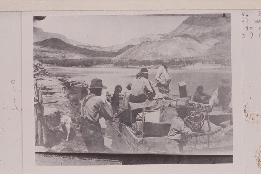 The motorboat brought to Lees Ferry in September 1910. Copy of print in Waller collection