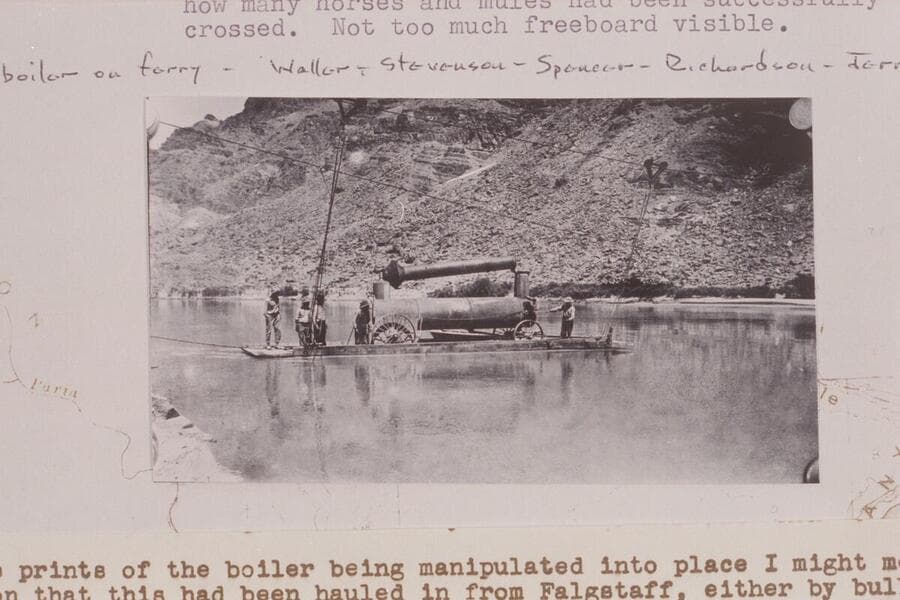 Boiler on the ferry at Lees Ferry. Copy of print in Waller collection