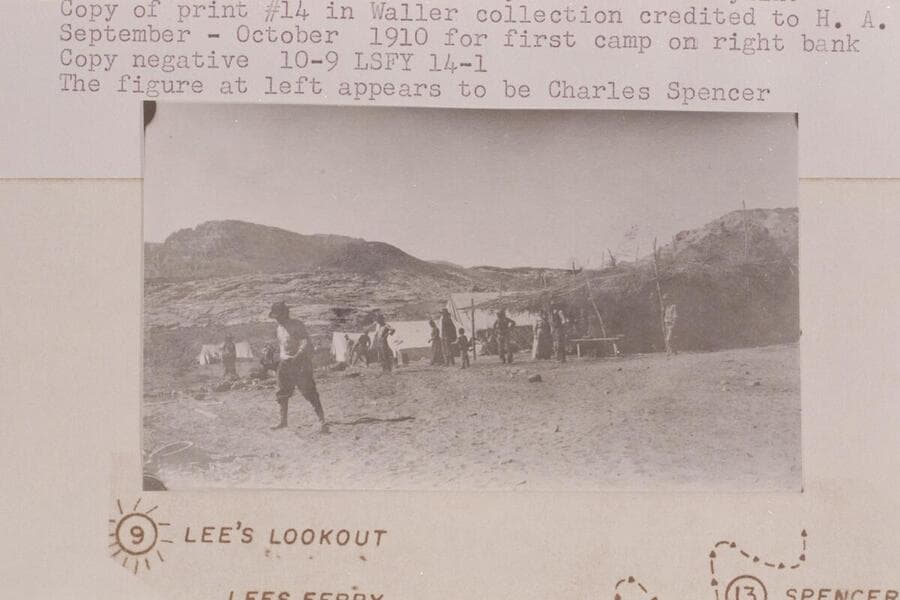 Lees Ferry. The fort and tents, lower center. From Charles Spencer collection, p.57, lower left