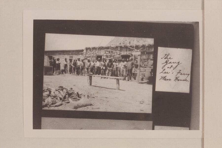The crew working with the American Placer Corporation, Lees Ferry at the mess house