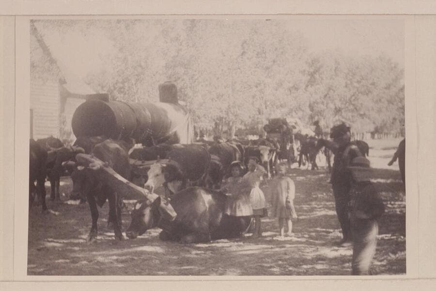 Ox team hauling boiler from Marysvale to Lees Ferry for the Spencer operations