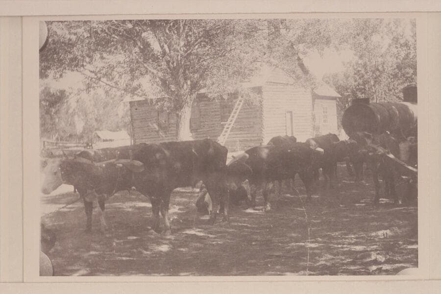 Ox team hauling boiler from Marysvale to Lees Ferry for the Spencer operations