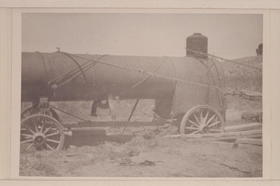 Ox team hauling boiler from Marysvale to Lees Ferry for the Spencer operations