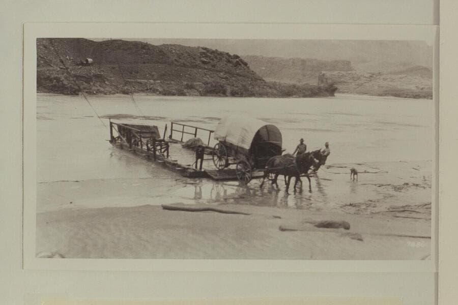 Lees Ferry from boat. The stern wheel boat "Navajo" is at the shore just left of center