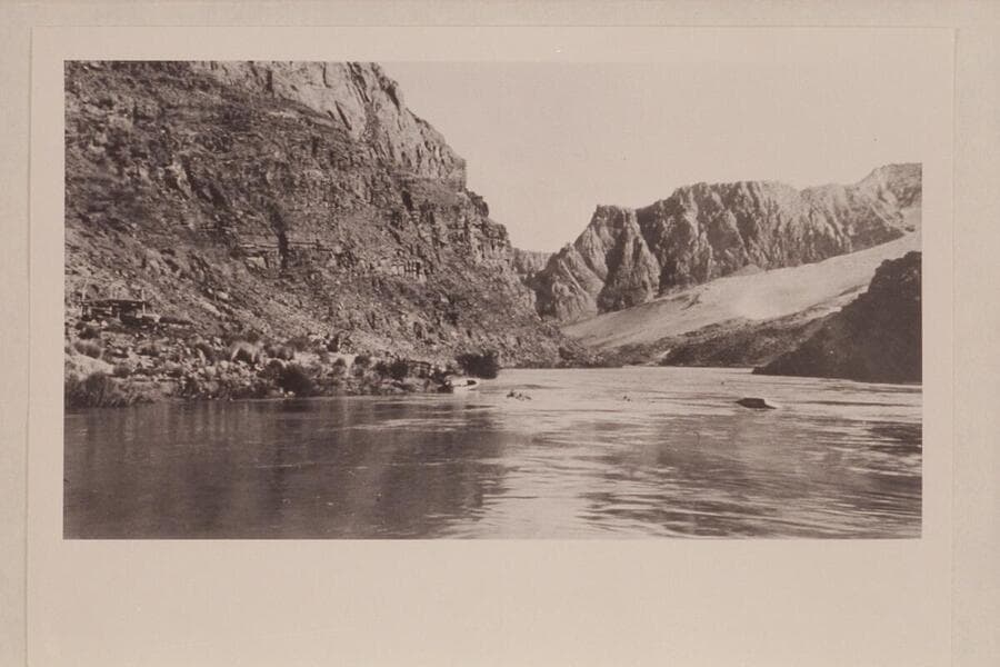 Part of sunken Lees Ferry shown in the river. Copy of print in collection of David C. Lowrey