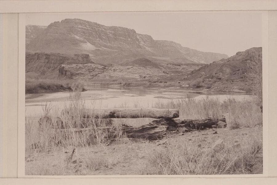 Upriver at Lees Ferry showing the Fort and the Spencer Buildings