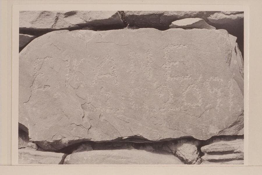 Elmer Kane's name and the date Aug 20 91 cut in the fort at Lees Ferry. Kane must have cut his name here when he was with the Best Expedition
